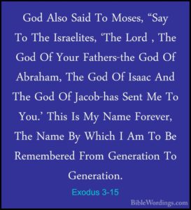 When we read Exodus 3:15; we see that God is to be called Lord, which is His Name for all generations. Throughout the Bible we see various names that refer to God. All these names represent God’s covenant promises that He swore by Himself  as God Almighty starting with Abraham (Genesis 17:7) that continues today for those who believe in His Son, Jesus Christ.