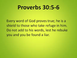 God is faithful to stay true to His Word. Proverbs 30:5: “Every word of God is proves true. he is a shield to those who take refuge in him.” However we are given a warning in verse 6. “Do not add to his words, lest he rebuke you and you and you be found a liar.” Other translations are worded differently but the meaning is the same. His warning is self-explanatory, so further comments needed from me.