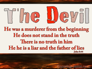 Murderer and Liar: You are of your father the devil, and the desires of your father you want to do. He was a murderer from the beginning, and does not stand in the truth, because there is no truth in him. When he speaks a lie, he speaks from his own resources, for he is a liar and the father of it. (John 8:44)